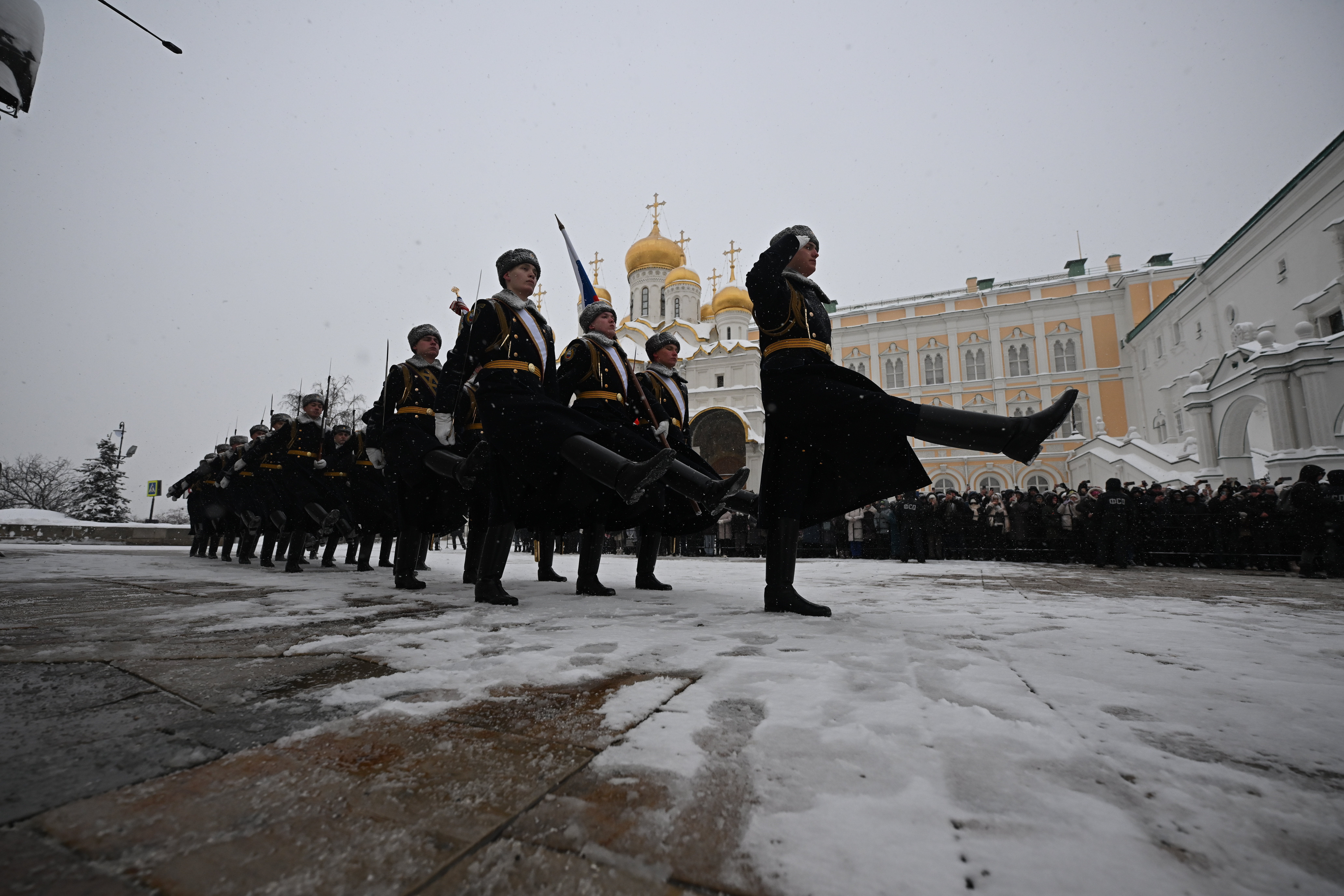 29 января 2026 года слова клятвы на верность Отечеству произнесли юноши, призванные осенью прошлого года в Президентский полк СКМК ФСО России из 42 регионов Российской Федерации. С напутственным словом перед военнослужащими выступили Статс-секретарь – заместитель директора ФСО России генерал-полковник Шлемин В.Б., командир Президентского полка СКМК ФСО России генерал-майор Сурайкин М.Н., участники церемонии и приглашенные гости. Несмотря на сложные погодные условия – низкую температуру воздуха, сильный ветер и снег – на мероприятии присутствовали многочисленные родственники военнослужащих, многие из которых приехали в Москву из разных уголков нашей страны. Завершилась церемония торжественным маршем молодого пополнения Президентского полка по Соборной площади Московского Кремля.
